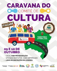 A Caravana do Comitê de Cultura é um momento de capacitação, escuta e celebração das manifestações culturais da Bahia, reunindo vozes, ideias e práticas que constroem diariamente a diversidade cultural do estado. O evento conta com o apoio da Secretaria de Educação, Secretaria de Cultura e Prefeitura de Itacaré, além da Fundação Pedro Calmon.