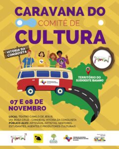 A cidade de Vitória da Conquista recebe nos dias 7 e 8 de novembro a Caravana do Comitê de Cultura da Bahia (PNCC/Ba), que percorre diferentes territórios de identidade do estado promovendo encontros, formações e diálogos sobre políticas culturais, economia criativa e práticas artísticas.