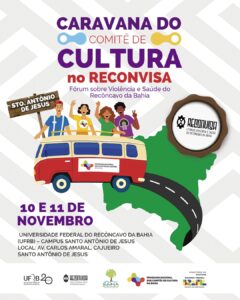 O Comitê de Cultura da Bahia realiza, nos dias 10 e 11 de novembro, mais uma edição da Caravana do Comitê de Cultura, desta vez no território do Recôncavo Baiano, dentro da programação do ReconvISA – Fórum sobre Violência e Saúde do Recôncavo da Bahia. O evento acontece na Universidade Federal do Recôncavo da Bahia (UFRB), campus de Santo Antônio de Jesus, e tem como propósito fortalecer o diálogo entre cultura, saúde e cidadania.