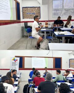 Conduzida pelo formador Alex Maia, a atividade apresentou, de maneira objetiva e prática, os principais procedimentos para a elaboração de projetos alinhados à Política Nacional Aldir Blanc (PNAB). Foram abordados conceitos estruturantes, etapas de montagem, documentação necessária e formas de compreender a lógica de planejamento e organização do sistema cultural.